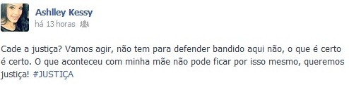 No Facebook, familiares de Érica postaram várias mensagens pedindo justiça: