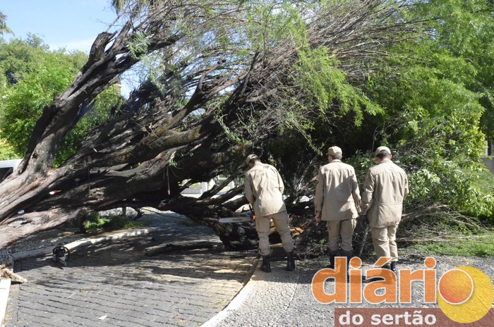 Chuva forte derruba árvore antiga na cidade de Cajazeiras; Bombeiros foram acionados