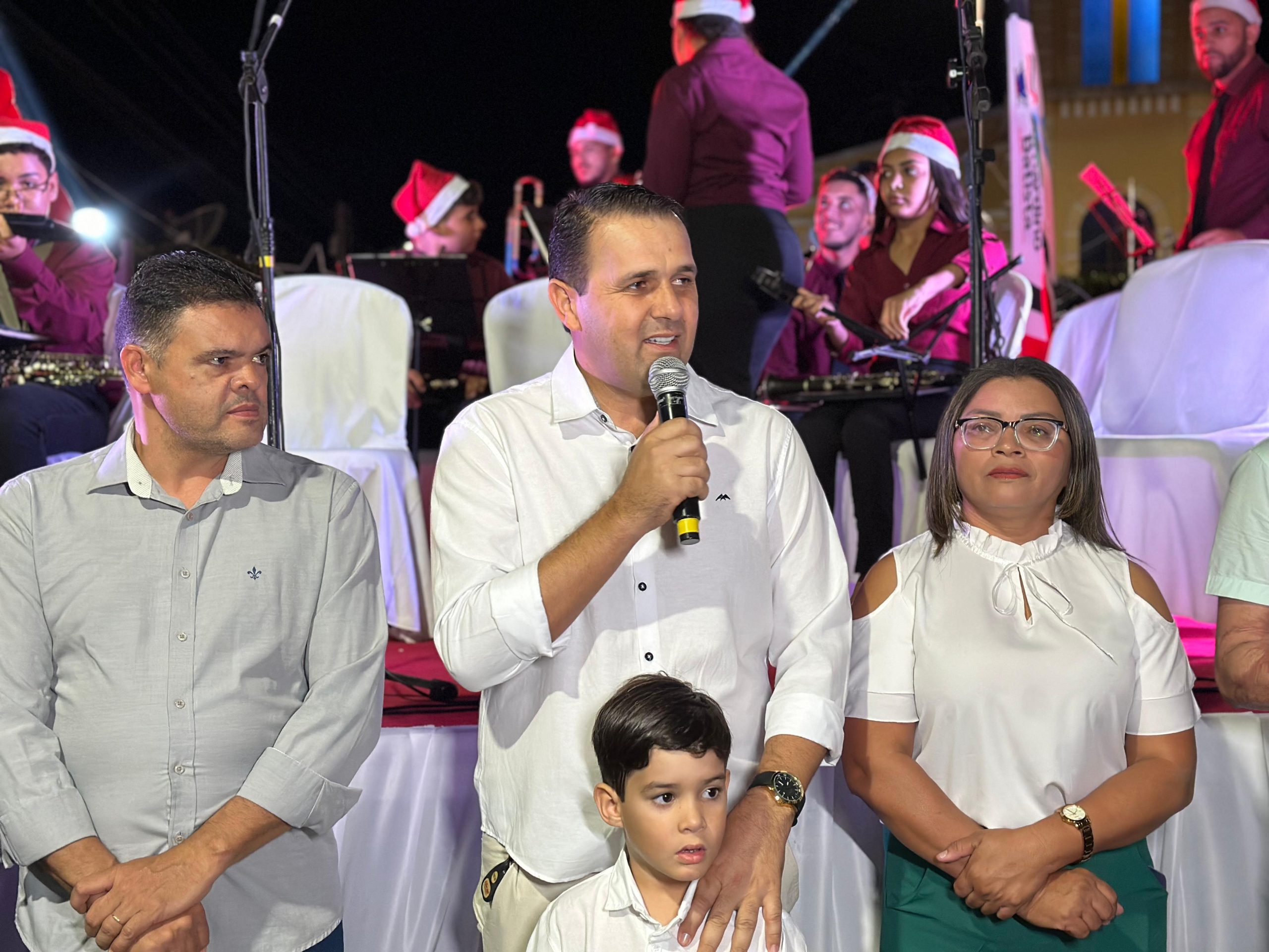 O prefeito Aldo Andrade, juntamente com o Padre Ewerton Gabriel levaram suas mensagens aos presentes, além da vereadora Eliete Silva, presidente de camara municipal, finalizando com a solenidade de “acionar o botão” para acabar com toda a expectativa e ansiedade que rodeava a população que queria ver as luzes acesas com a alegria do Natal.