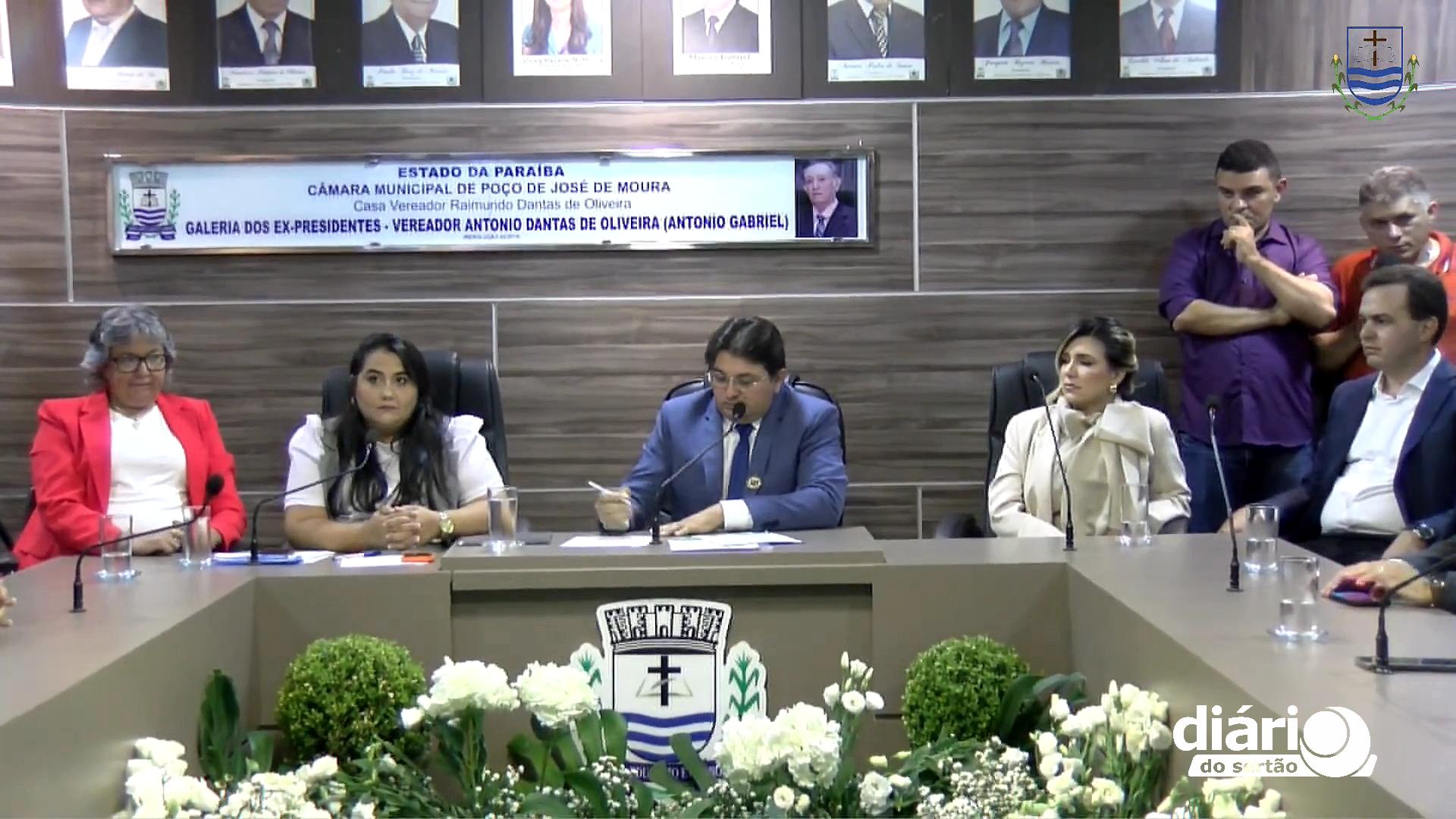 A prefeita eleita de Poço José de Moura, Lais Raquel (PSB), tomou posse nesta quarta-feira (1º), para seu primeiro mandato à frente da prefeitura. Com ela, também foi empossada Veluma Moura (PSB), vice-prefeita eleita da cidade, que fica na Região de Cajazeiras, no Sertão da Paraíba, além dos nove vereadores que vão comandar o Legislativo municipal pelos próximos quatro anos.