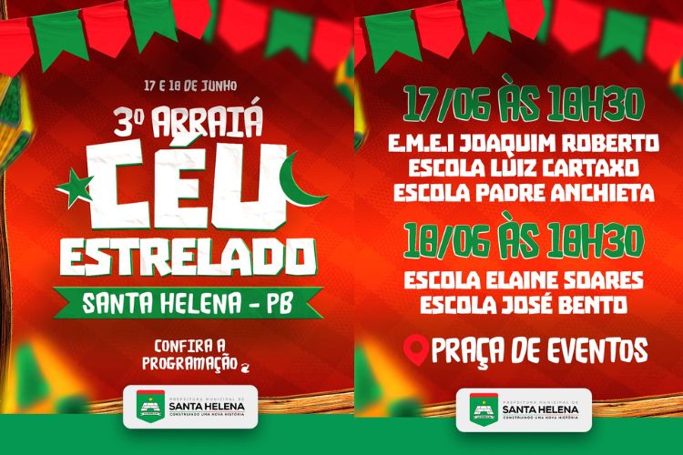 João Cléber detalhou a programação, destacando o Arraiá Céu Estrelado, que há três anos reúne as escolas municipais na praça de eventos no dia 17 de junho. O evento, que é um “show de apresentação, arte, cultura”, promove a reunião das famílias e incentiva a economia local através da gastronomia, barracas de comidas típicas e artesãos.