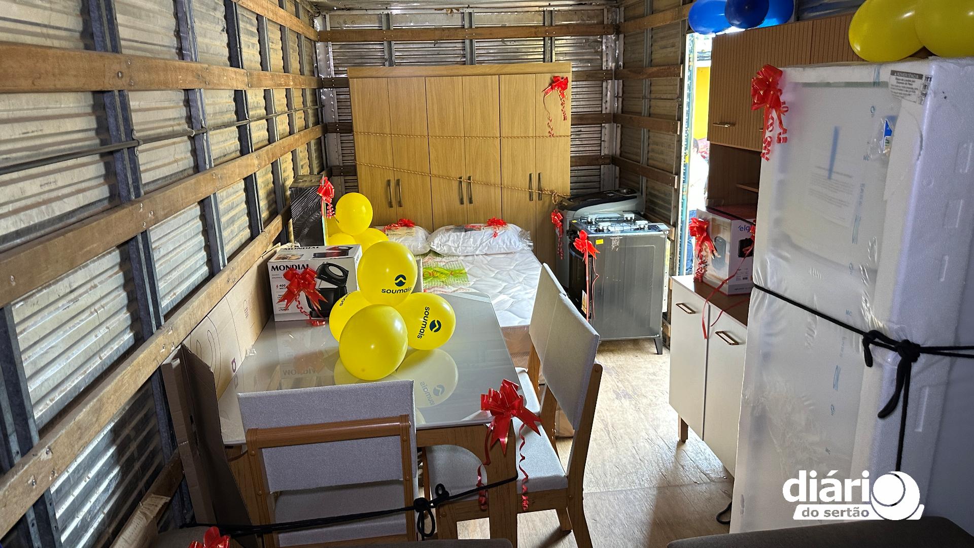 SouMais entrega caminhão de prêmios à família da zona rural de São João do Rio do Peixe. Foto: Diário do Sertão