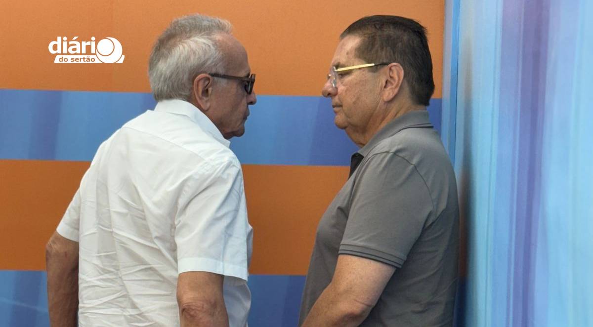 Após entrevista na TV Diário do Sertão, Adriano Galdino e Cícero Lucena conversam reservadamente. (Foto Diário do Sertão)
