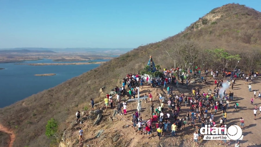 A estátua, localizada no alto de uma das serras do distrito, atrai visitantes com frequência. (Foto: Diário do Sertão)
