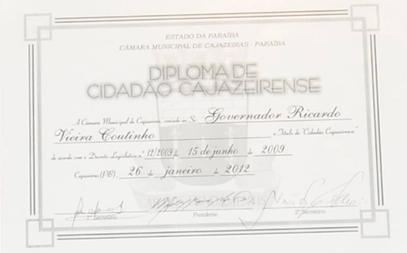 O governador da Paraíba, Ricardo Coutinho (PSB), foi agraciado com o título de Cidadão Cajazeirense em uma solenidade especial realizada no dia 26 de janeiro de 2012. O evento aconteceu no Teatro Íracles Pires (ICA) de Cajazeiras, marcando a abertura da programação de aniversário de 27 anos do espaço cultural.