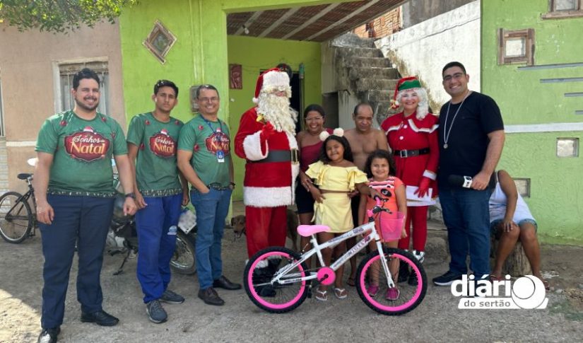 A missão foi realizar o desejo de duas crianças que, ao escreverem suas cartinhas, foram contempladas pela ação “Sonho de Natal”, uma parceria entre o Lojão Rio do Peixe e a TV Diário do Sertão.