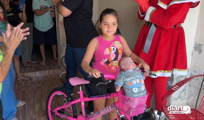 A ação é uma iniciativa do Lojão Rio do Peixe e da TV Diário do Sertão e está presenteando crianças do Alto Sertão com uma bicicleta Colli novinha