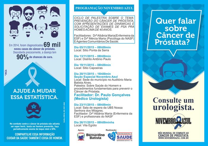 O Novembro Azul é uma campanha de conscientização realizada no mês de novembro, dirigida à sociedade e, em especial, aos homens, para conscientização a respeito de doenças masculinas, com ênfase na prevenção e no diagnóstico precoce do câncer de próstata.