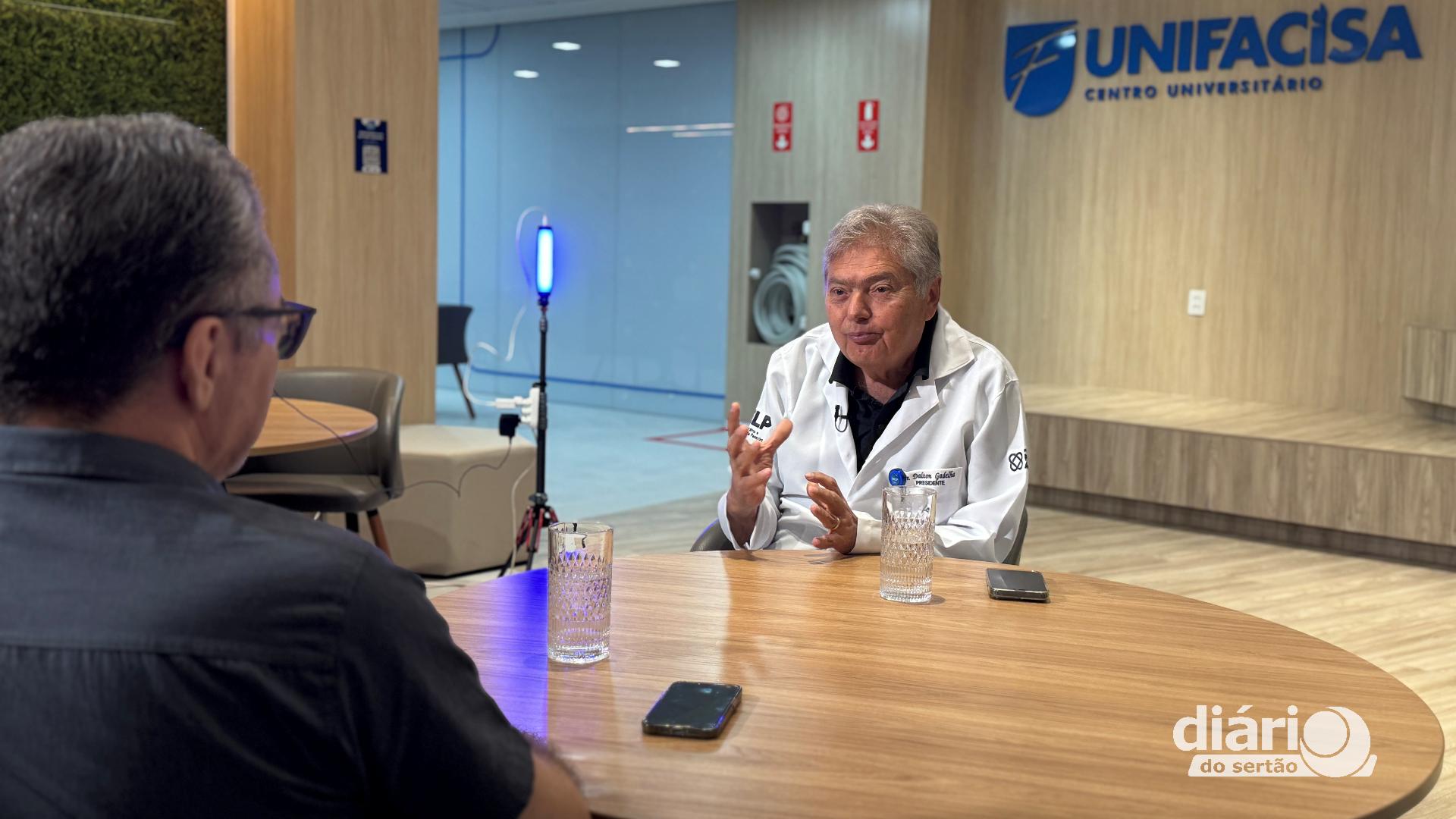 Fundador da UNIFACISA e do Hospital HELP, Dalton Gadelha em entrevista exclusiva concedida ao jornalista Levi Dantas, para a TV Diário do Sertão e Líder FM (Foto: Diário do Sertão)