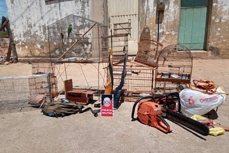 Um homem que estava no local e o armamento foram levados para a delegacia de Patos. O suspeito pelo crime ambiental pode pagar uma multa de até R$ 5.000,00.
