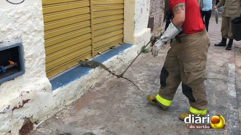VÍDEO: Aparição de iguana movimenta centro de Cajazeiras e bombeiros são acionados para capturar animal