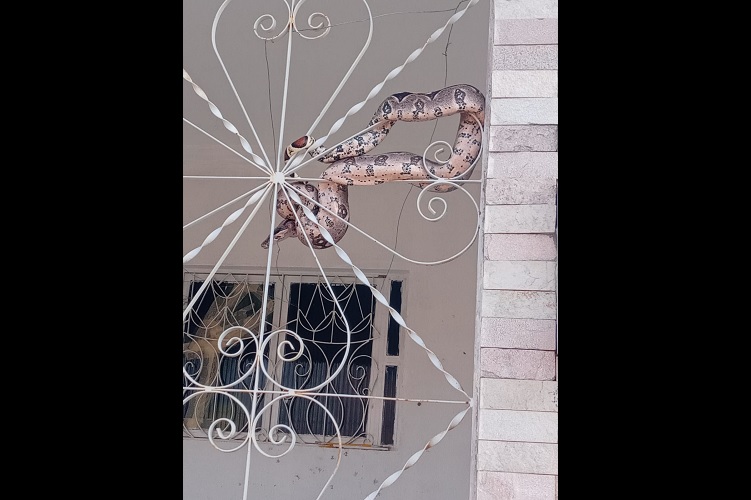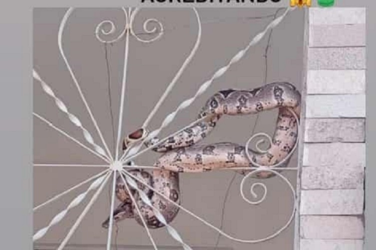 De acordo com a moradora Damiana Sousa, de 23 anos, ela e seu esposo foram surpreendidos ao serem chamados por vizinhos, e ao saírem se depararam com bastante pessoas que já se encontravam no local vendo a serpente enrolada no portão.