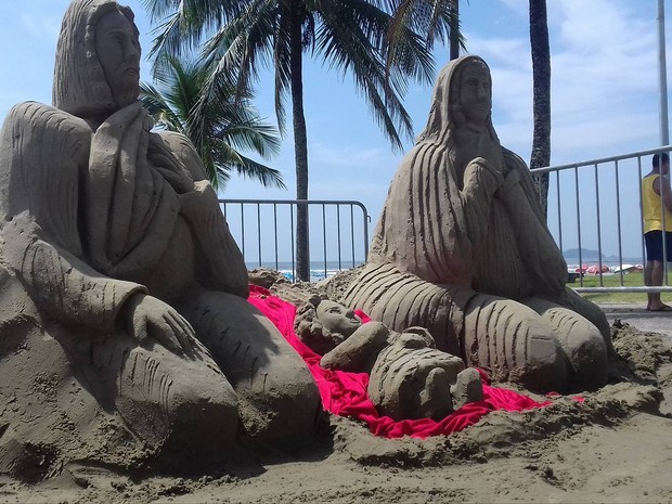 Para ver o presépio de areia esculpido na praia, ele está exposto em frente ao Centro de Informações Turísticas (CIT) daquela cidade e estará exposto até 4 de janeiro na cidade.