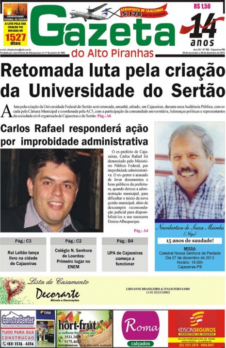 Capa Jornal Gazeta do Alto Piranhas – 29082013