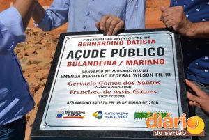 O deputado federal Wilson Filho (PTB), autor de emenda parlamentar para a construção do açude, destacou a responsabilidade de Gervázio Gomes na condução do dinheiro público.
