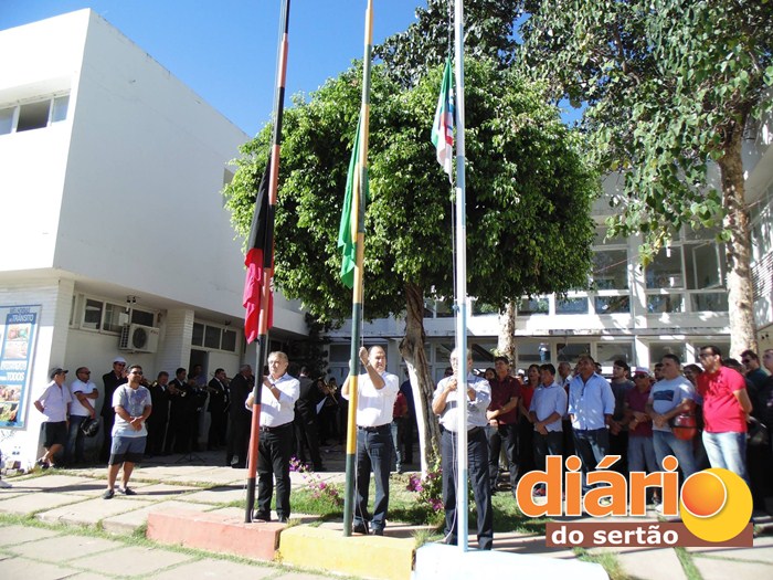A população acompanhou de perto o hasteamento das bandeiras da cidade de Sousa, da Paraíba e do Brasil no paço municipal.