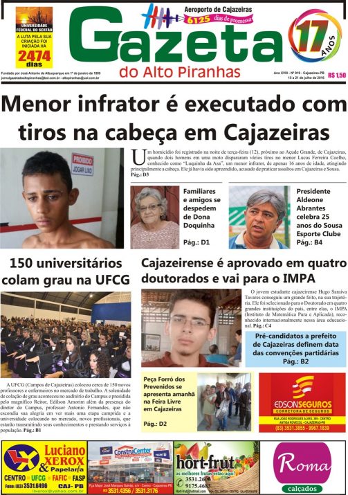 Capa do Jornal Gazeta do Alto Piranhas – 15.07.2016
