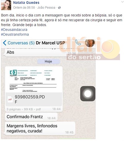 O resultado da biopsia saiu e o médico de Natália entrou em contato com ela e afirmando que os exames apontaram a cura. Veja!