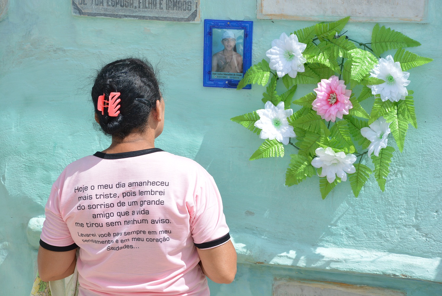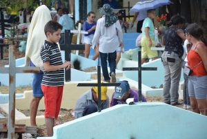 No cemitério Nossa Senhora Aparecida, um dos túmulos mais visitados no período da manhã foi o da professora Janicelia Mangueira, que faleceu prematuramente aos 40 anos, em maio deste ano, por problemas de saúde.