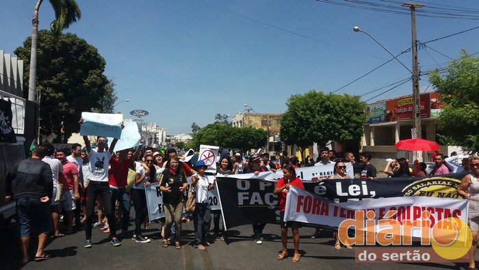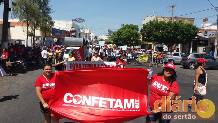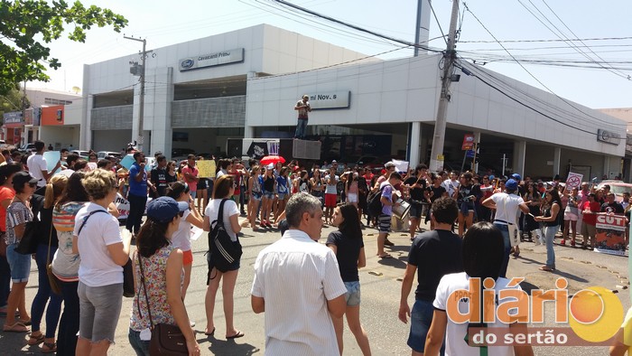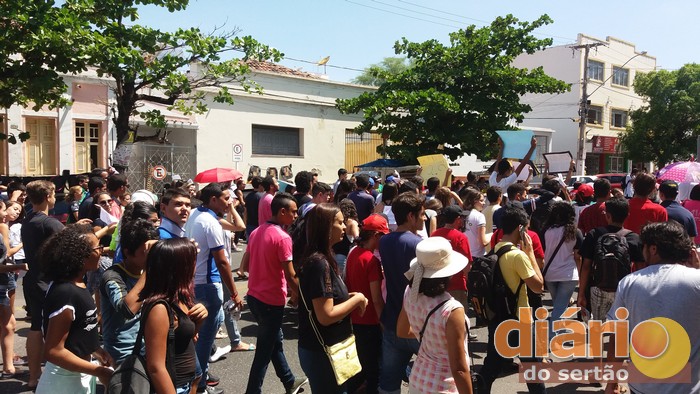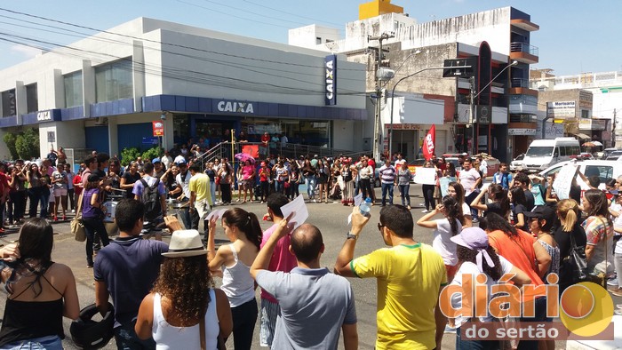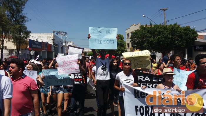 Em Cajazeiras também houve manifestação contra a PEC 55 na manhã desta sexta. Estudantes, professores, membros de grupos sociais e sindicalistas caminharam pelas ruas do Centro mostrando cartazes, cantando e entoando palavras de protesto e resistência. O ato parou na Avenida Coronel Juvêncio Carneiro, uma das principais do Centro da cidade.