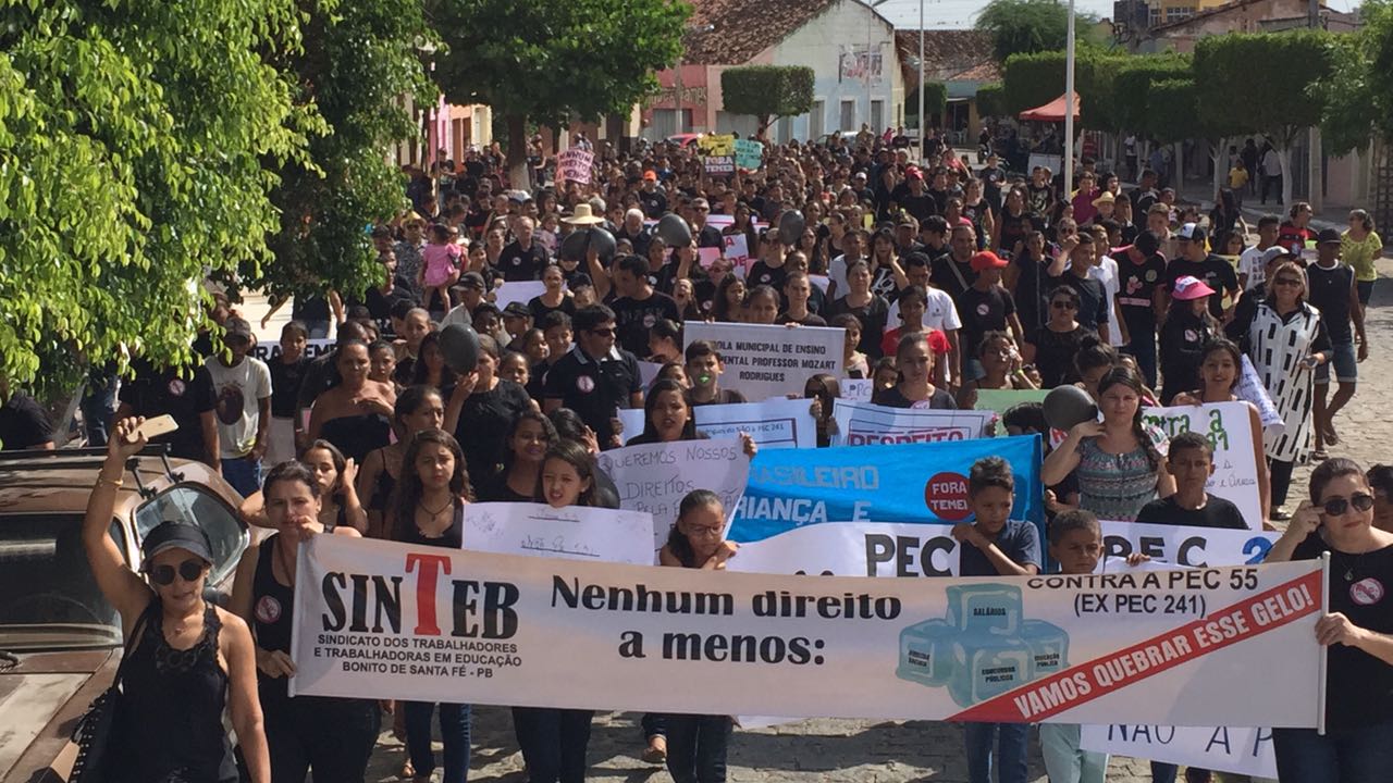 Várias cidades do Alto Sertão paraibano aderiram à paralisação nacional desta sexta-feira (11) e as suas populações realizaram manifestações nas ruas contra a PEC 55 que propõe congelar os investimentos públicos do Governo Federal por 20 anos. Bonito de Santa foi uma delas.