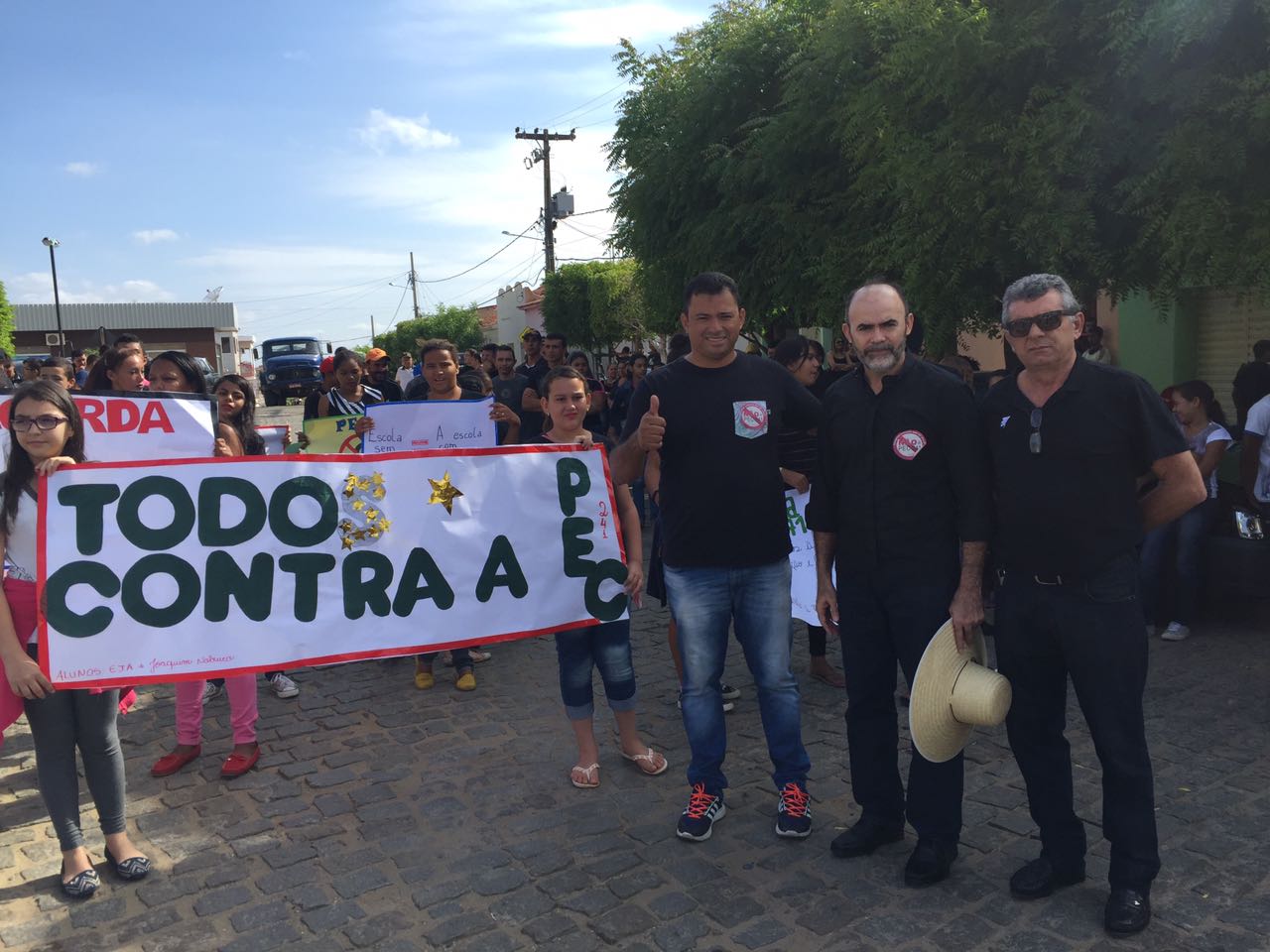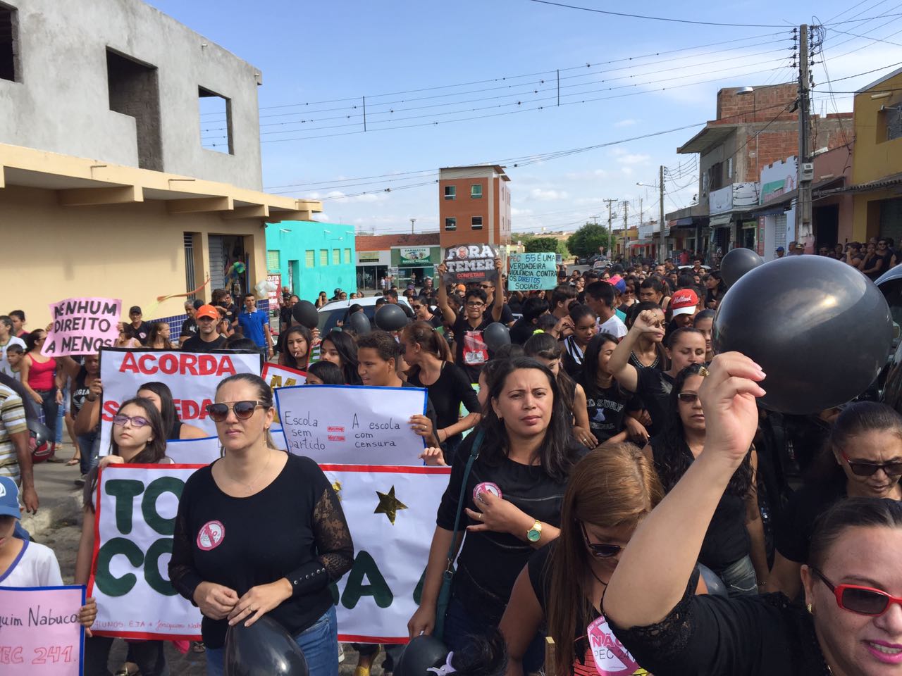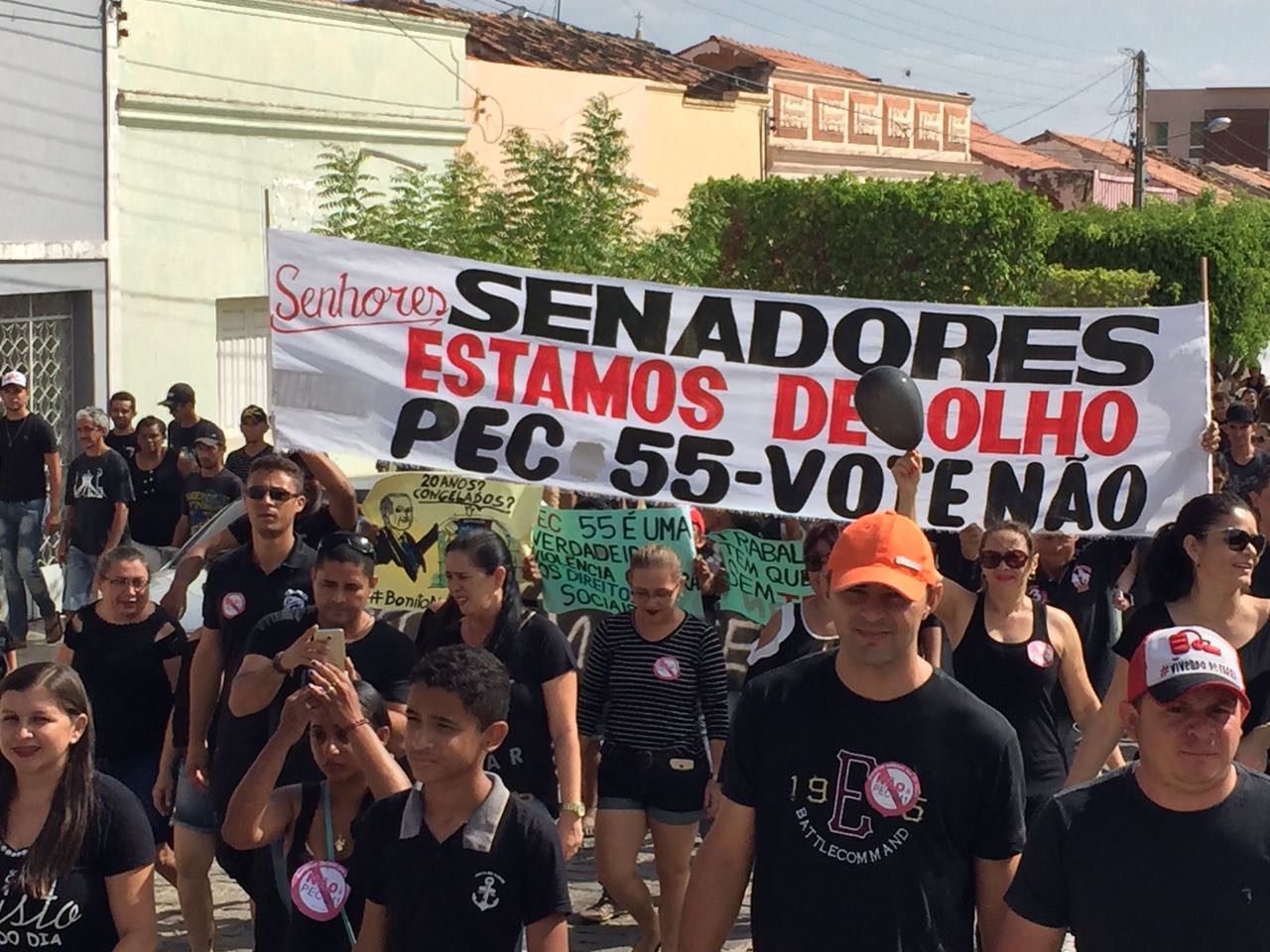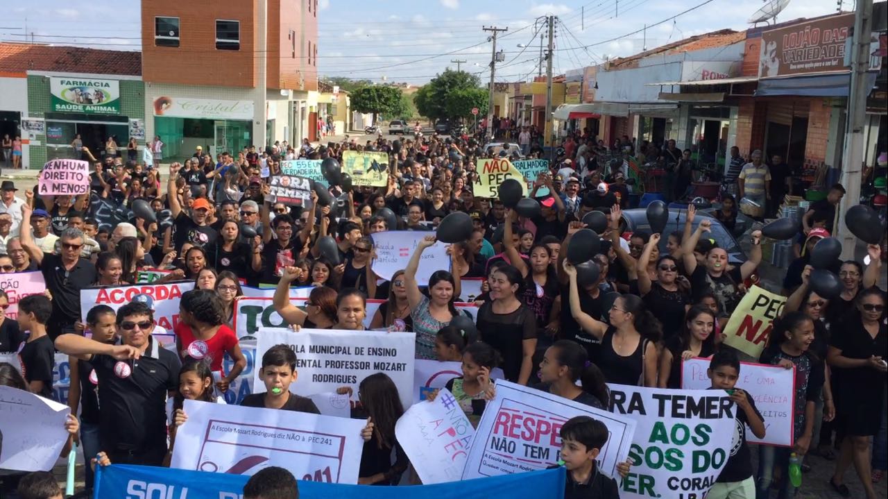 Vestidos de preto, eles saíram em passeata até um palco armado no Centro, onde políticos, gestores e sindicalistas fizeram seus discursos. A prefeita Alderi Caju destacou o apoio da administração municipal às manifestações e disse que as consequências da PEC atingem também os prefeitos.