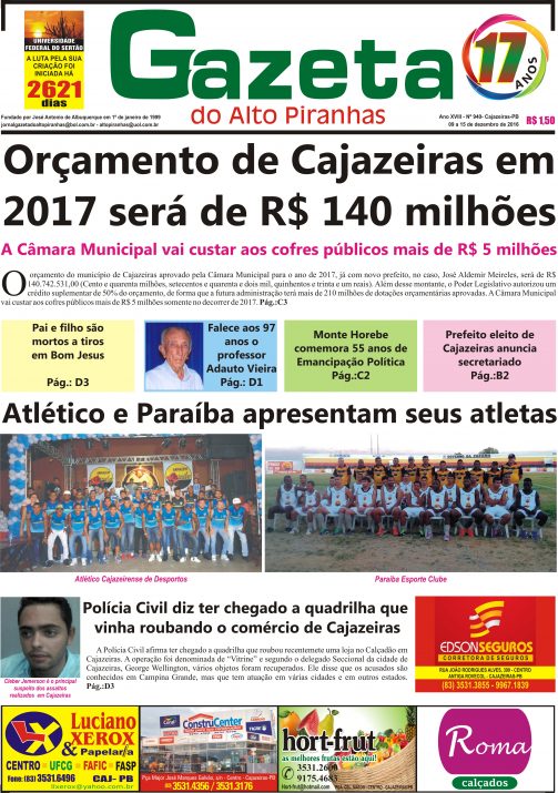 O jornal Gazeta do Alto Piranhas circula todas as sextas-feiras, na cidade de Cajazeiras e região, para assinar ou comprar: (83) 3531-1535