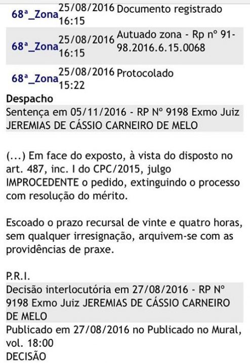 Veja abaixo as duas decisões do juiz Dr. Jeremias: