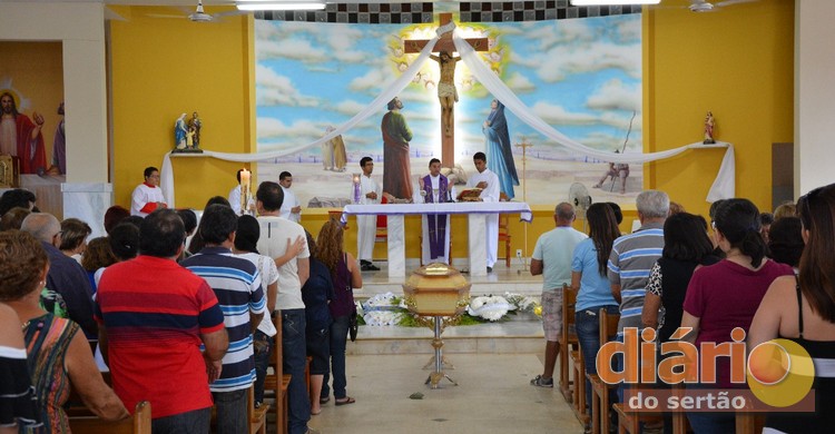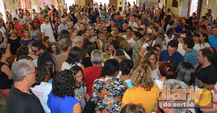 Com igreja lotada, colegas, amigos e familiares de Valéria Medeiros assistiram a celebração de recomendação do corpo e rezaram em sua homenagem.