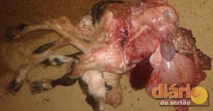 Um cabrito que nasceu nessa quinta-feira (18) no Sitio Cocos, Zona Rural de Cajazeiras assustou os moradores. O filhote não tem uma formação total do corpo, e segundo um morador da comunidade, teria nascido com os órgão expostos.