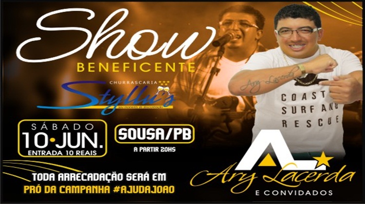 Ary Lacerda, que é um grande artista da música sousense, junto com amigos também artistas da música, estarão realizando na cidade de Sousa, uma festa beneficente para a aquisição dessa cadeira adaptada, que custa mais de R$ 4 mil. O evento será realizado dia 10 de junho, na Churrascaria Stylus.