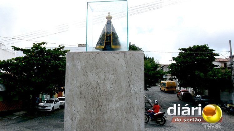 Depois de explosão misteriosa, família recoloca imagem de Nossa Senhora Aparecida em monumento na praça 13 de maio em Cajazeiras