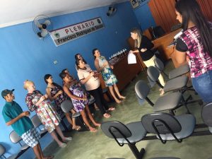 A palestra com público alvo gestantes do município, decorreu sobre os temas alterações fisiológicas na gestação e Pai Presente: Cuidado e Compromisso.