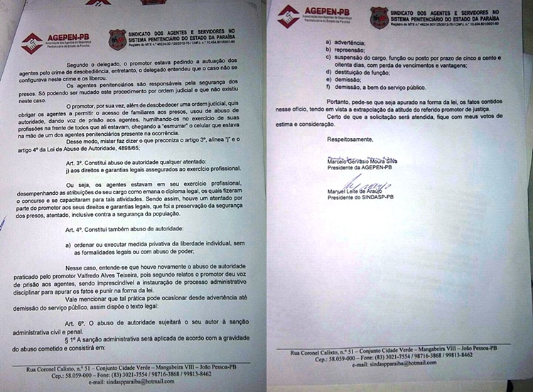 “Ele agiu em total descontrole, a conduta do promotor não condiz com o padrão ético do Ministério Público da Paraíba. Esse promotor é despreparado e agiu com flagrante abuso de autoridade, repudiamos essa atitude e vamos denunciar o caso no Conselho Nacional do Ministério Público”, destacou.