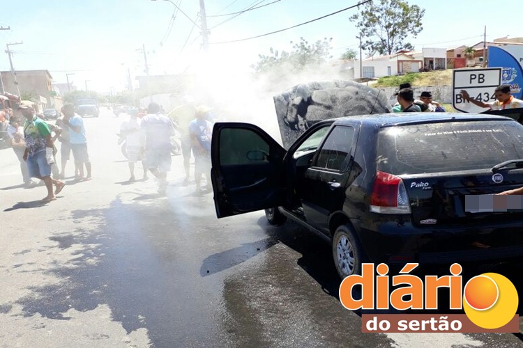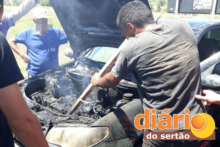 Veículo pega fogo na cidade de Uiraúna (Foto: DS)