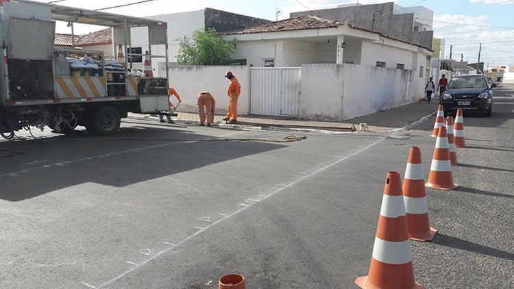 Prefeitura de Sousa inicia pintura de sinalização em ruas que receberam pavimentação asfáltica