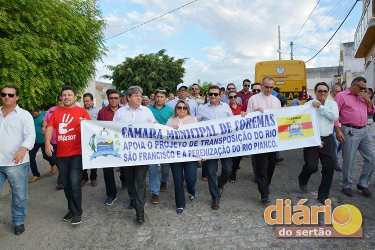 A cidade de Coremas, no Sertão da Paraíba, recebeu na sexta-feira (22) a Caravana das Águas da Assembleia Legislativa do Estado. Depois de passarem por várias cidades, políticos, sindicalistas, representantes de movimentos sociais e líderes religiosos se uniram a estudantes e realizaram uma passeata pelas principais ruas até a Praça Félix Rodrigues, no Centro, onde houve uma espécie de audiência pública.