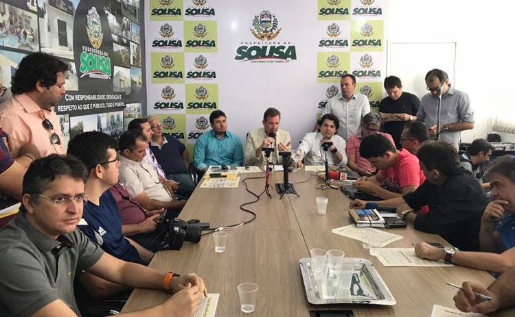 O Prefeito de Sousa, Fábio Tyrone, ladeado do vice-prefeito, Zenildo Oliveira e secretários municipais, concedeu entrevista coletiva para anunciar inaugurações e ações. Ocasião que o gestor sousense respondeu às perguntas dos comunicadores de diversos setores da imprensa.