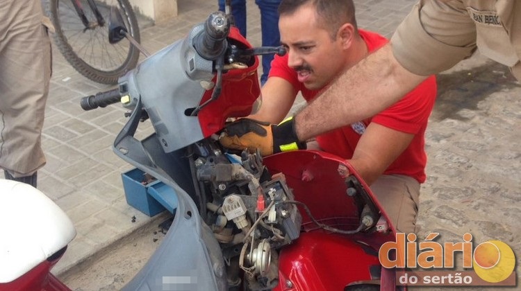 Na manhã desta quarta-feira (4), por volta das 11h40min, o Corpo de Bombeiros Militar da cidade de Sousa foi requisitado para retirada de uma cobra que estava escondida em uma motocicleta.