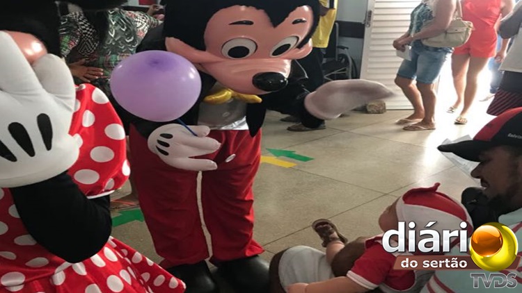 Os profissionais de diversas áreas da saúde realizaram uma programação toda especial aos pequenos pacientes, e trouxe a animação do Mickey Mouse e sua turma para alegrar aquela unidade hospitalar.