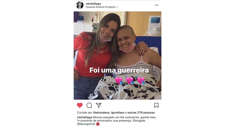 No dia 31 de julho de 2017, Michelly postou a mensagem: "De repente, a faculdade é trancada, o trabalho é afastado, a casa vira um quarto de hospital"