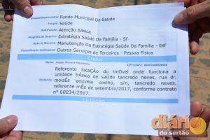 A casa deveria ser uma Unidade Básica de Saúde, porém até agora a Secretaria de Saúde ainda não cumpriu com a promessa de fazer o posto funcionar. Enquanto isso o aluguel está sendo pago.