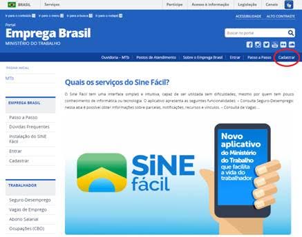 · Para ter acesso aos serviços do Emprega Brasil, a primeira coisa que o trabalhador precisa fazer é se cadastrar no site: