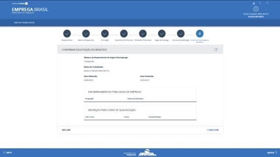 · Ao finalizar o cadastro, o trabalhador terá acesso aos serviços do Emprega Brasil. Uma das opções será “Solicitar Seguro-Desemprego”.