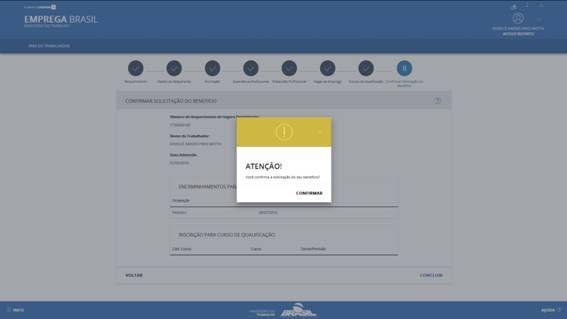 · Ao final, basta confirmar o interesse em solicitar o benefício do Seguro-Desemprego: