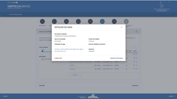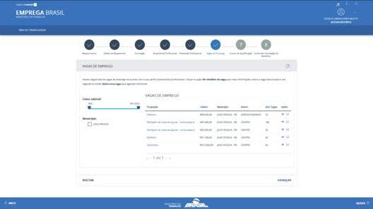 · As vagas de emprego são relacionadas automaticamente pelo programa: