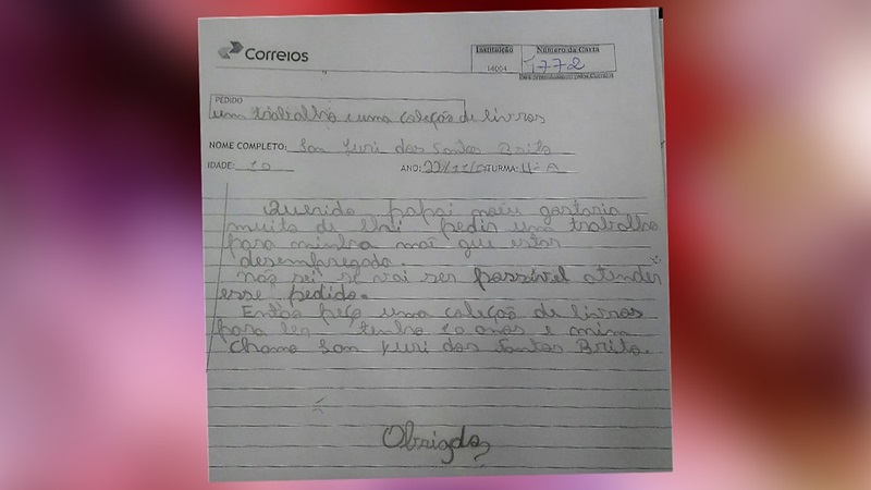 Menino pede emprego para mãe ao Papai Noel dos Correios, na Paraíba