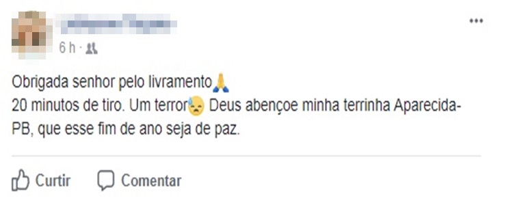 Ainda assustados com tamanha violência na cidade de Aparecida, região de Sousa durante esta segunda-feira (18), populares relataram através das redes sociais os momentos de terror vividos.