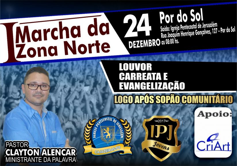 A igreja Pentecostal de Jerusalém promove nesse domingo (24), a I Marcha da Zona Norte, na cidade de Cajazeiras.