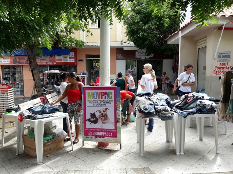 O Movimento Voluntário de Protetores de Animais de Cajazeiras (MOVPAC) realizou a venda e roupas e objetos doados com o objetivo de levantar recursos para as ações que salvam os animais vítimas de maus tratos nas ruas de Cajazeiras.